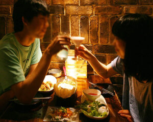 少し暗い店内は、心理学的に会話をはずませる効果があります。くわえて、家では作るのが難しい料理の数々がより一層ただの外食ではないと感じさせてくれ、増々会話がはずみます。